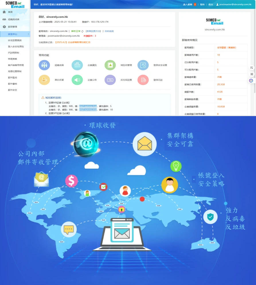 附加贈送服務:10個加強型公司域名郵箱電郵帳戶,加多20G獨立電郵寄存空間